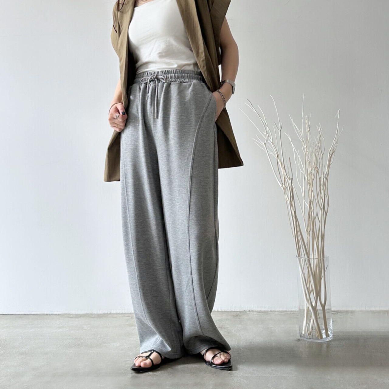 こちらのアイテムは、柔らかなミニ裏毛素材を使用した切り替えデザインのパンツです!リラックスした日常からおしゃれなお出かけまで、さまざまなシーンで活躍することが期待できる一枚です◎