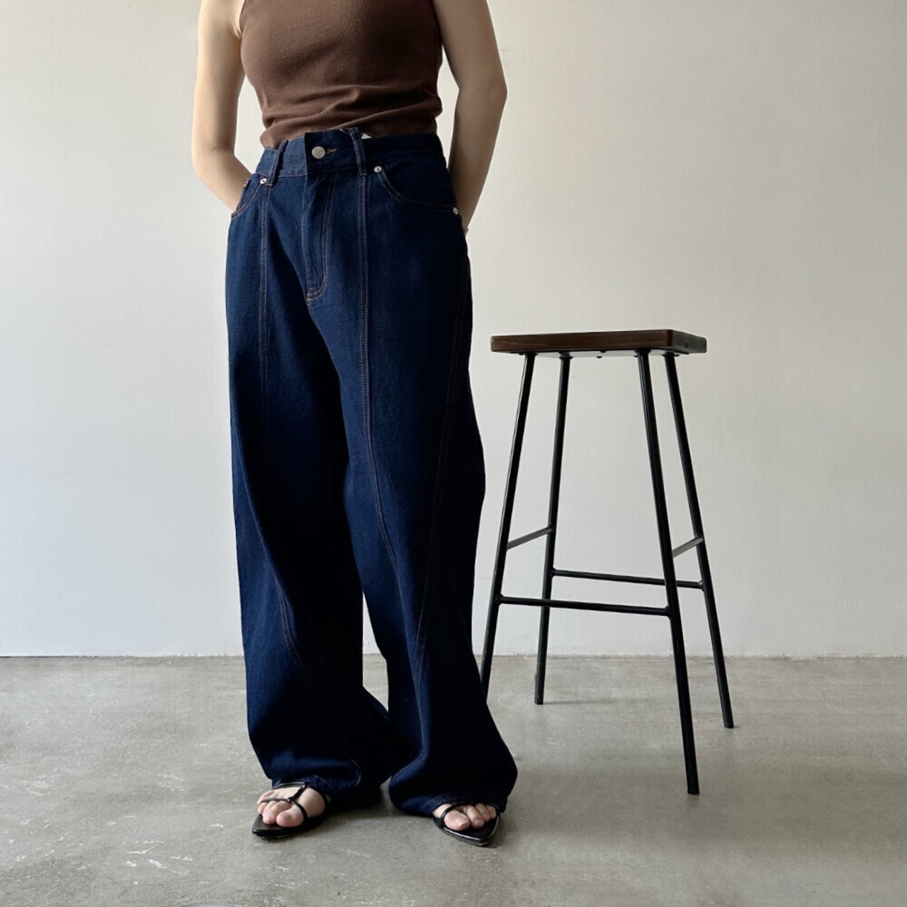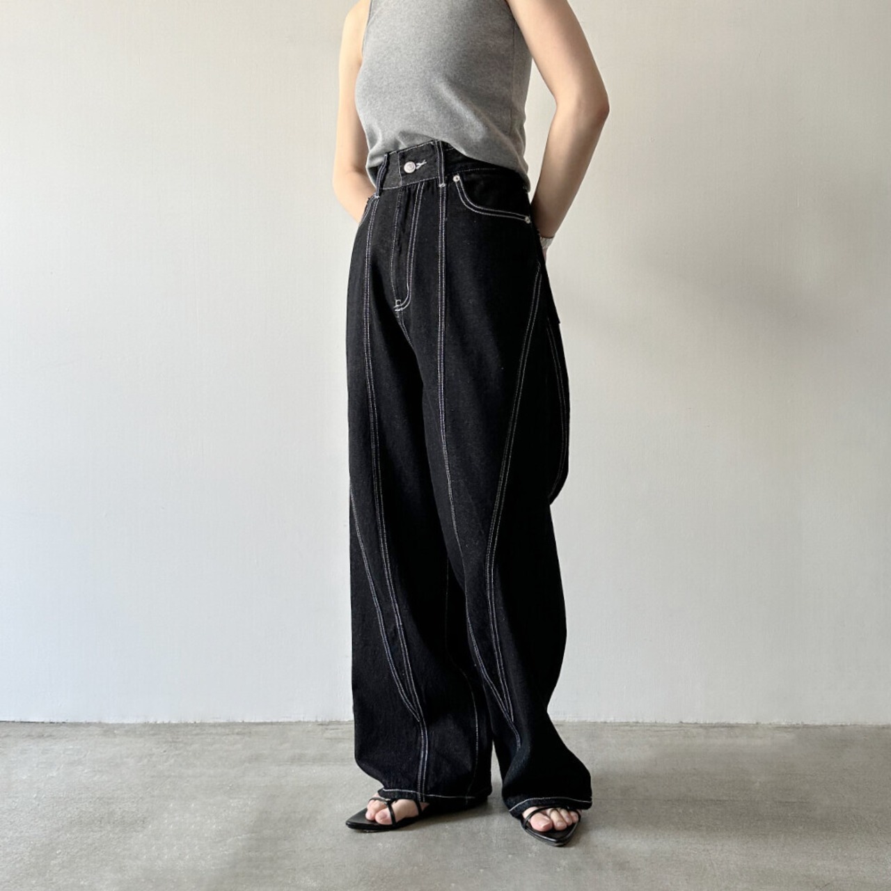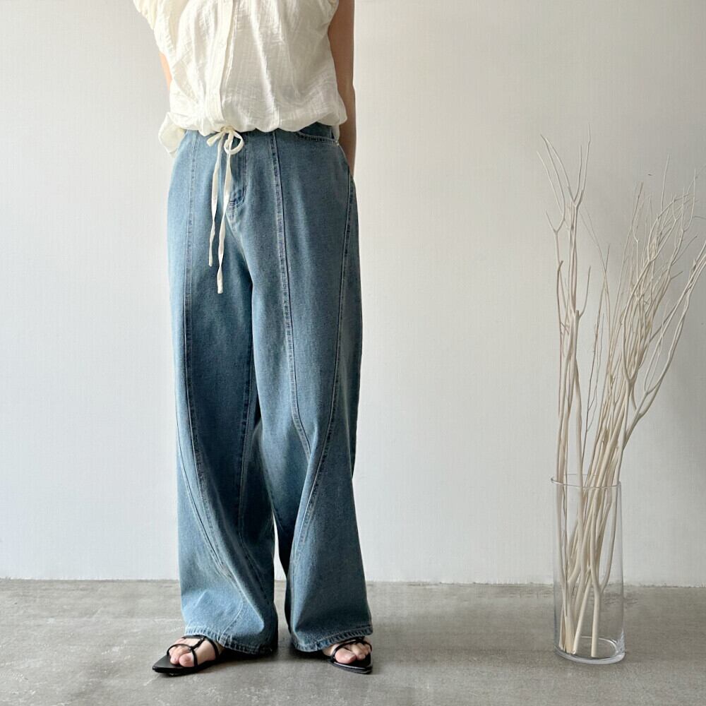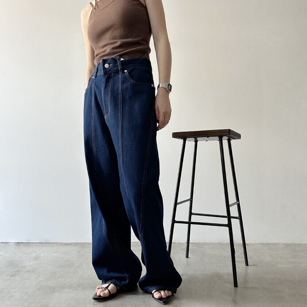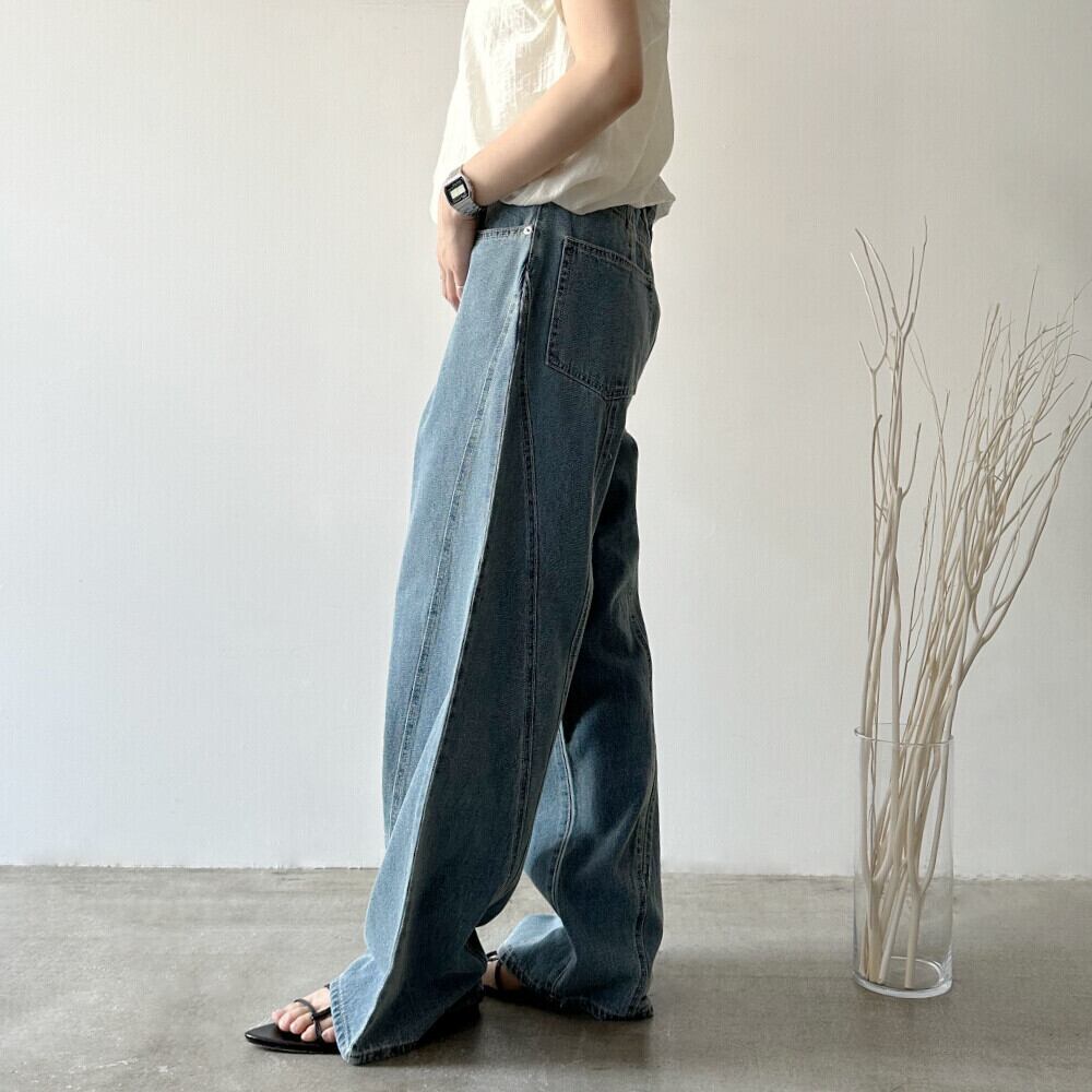 デニム切り替えストレートパンツが新登場!