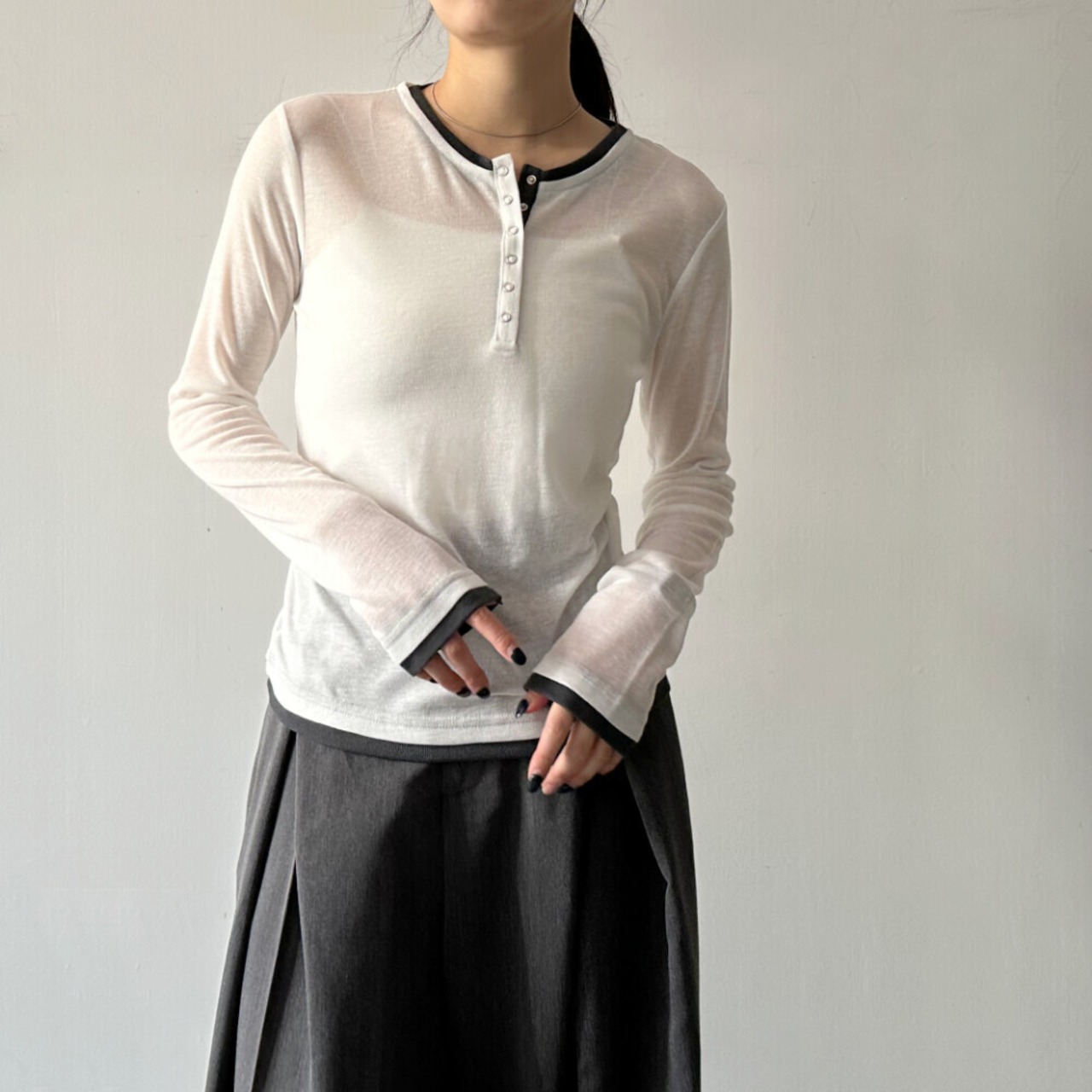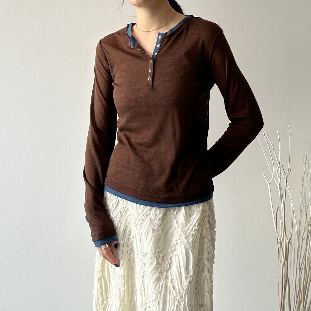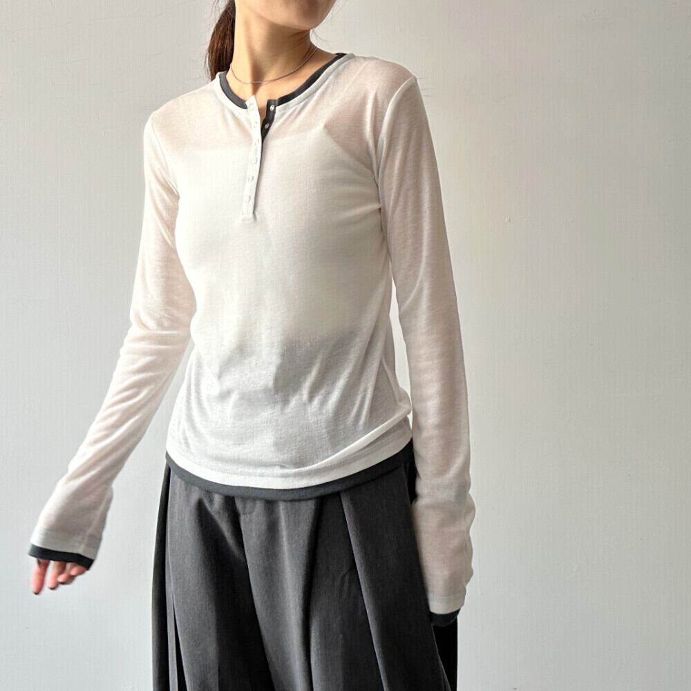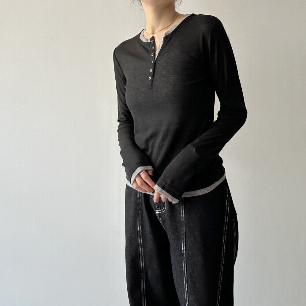 こちらのアイテムは、2025年新作のシアーフライス配色ヘンリー長袖プルオーバーです!デイリーから特別なお出かけまで幅広く活躍するスタイリッシュな一枚です◎