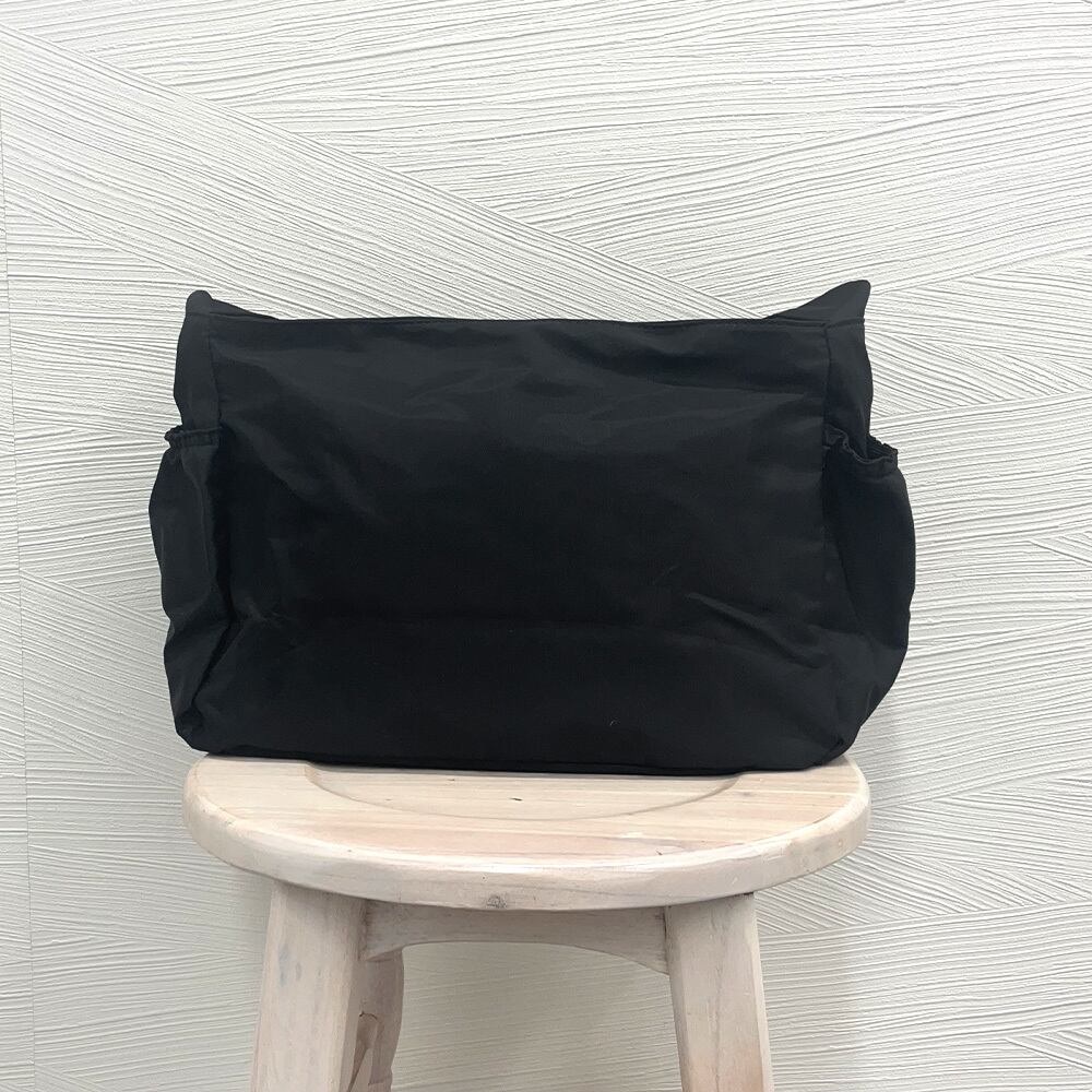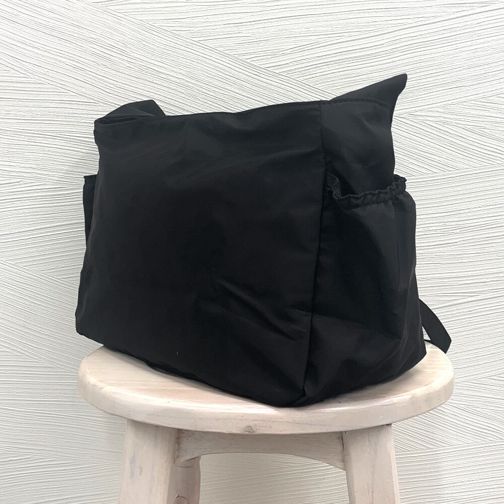 こちらのアイテムは、大容量を誇るナイロン製のショルダーバッグです!シンプルな黒のデザインが、どんなスタイルにも合わせやすく、日常使いにぴったりな一品です◎