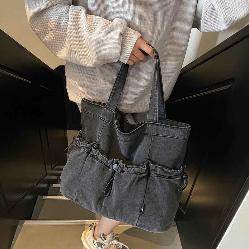 ・このデニムバッグは、耐久性に優れたデニム素材を使用しており、軽やかで快適な持ち心地が特徴です!大容量のトートバッグとしての使い勝手も良く、単肩脇バッグとしても楽しめるデザインが魅力です。しっかりとしたポケットを完備しており、デイリー使いからお出かけまで大活躍間違いなしです。