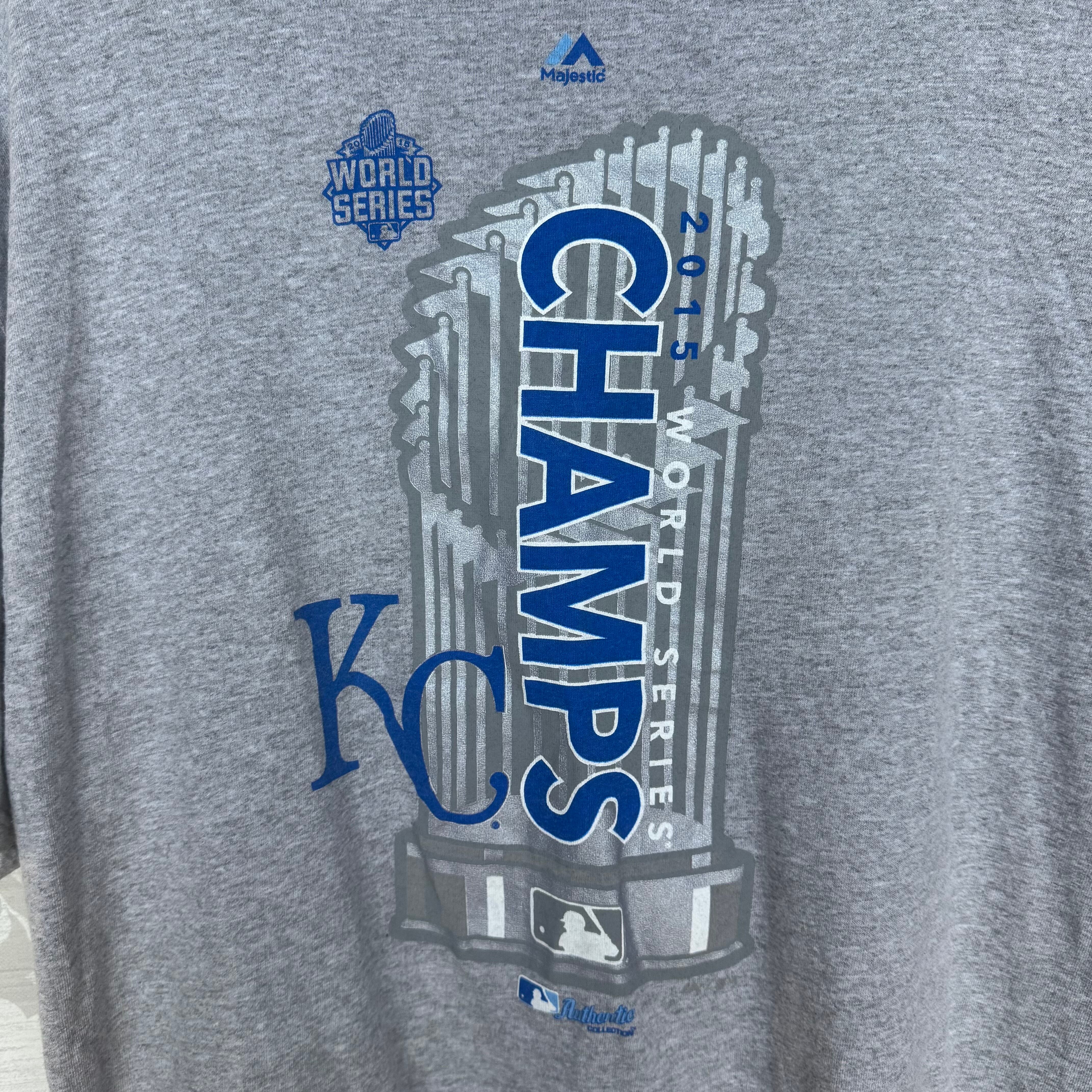 ・カンザスシティ・ロイヤルズの「KC」ロゴと「CHAMPS」の文字
