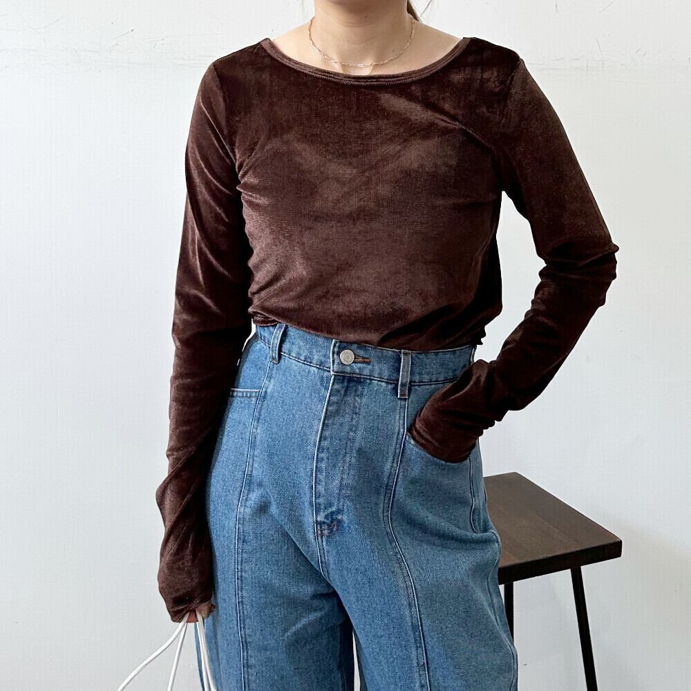 ・柔らかく上品なシアーベロア素材を使用したバックオープンプルオーバーは、抜け感のあるデザインが魅力的な一着です!