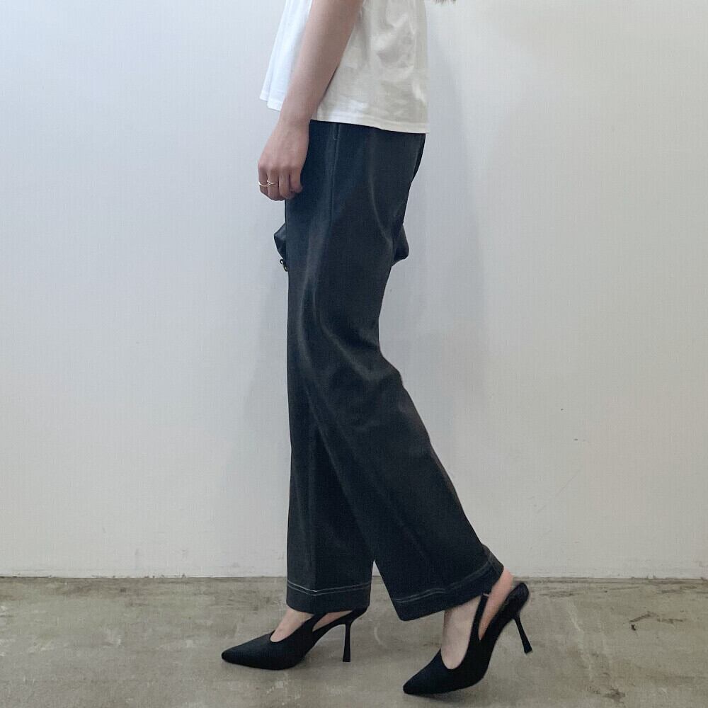 ・ポンチ素材を使用した配色ステッチのコクーンパンツは、リラックス感のあるシルエットが魅力的なアイテムです!