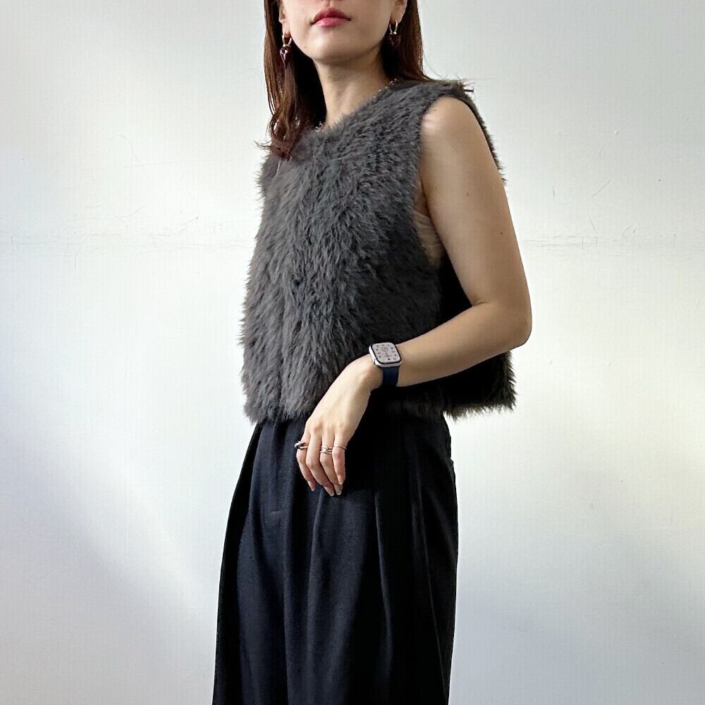 ・ミンクライク前後2WAYショートジレは、柔らかなミンクタッチ素材を使用した、季節感を演出するデザインが魅力のアイテムです!