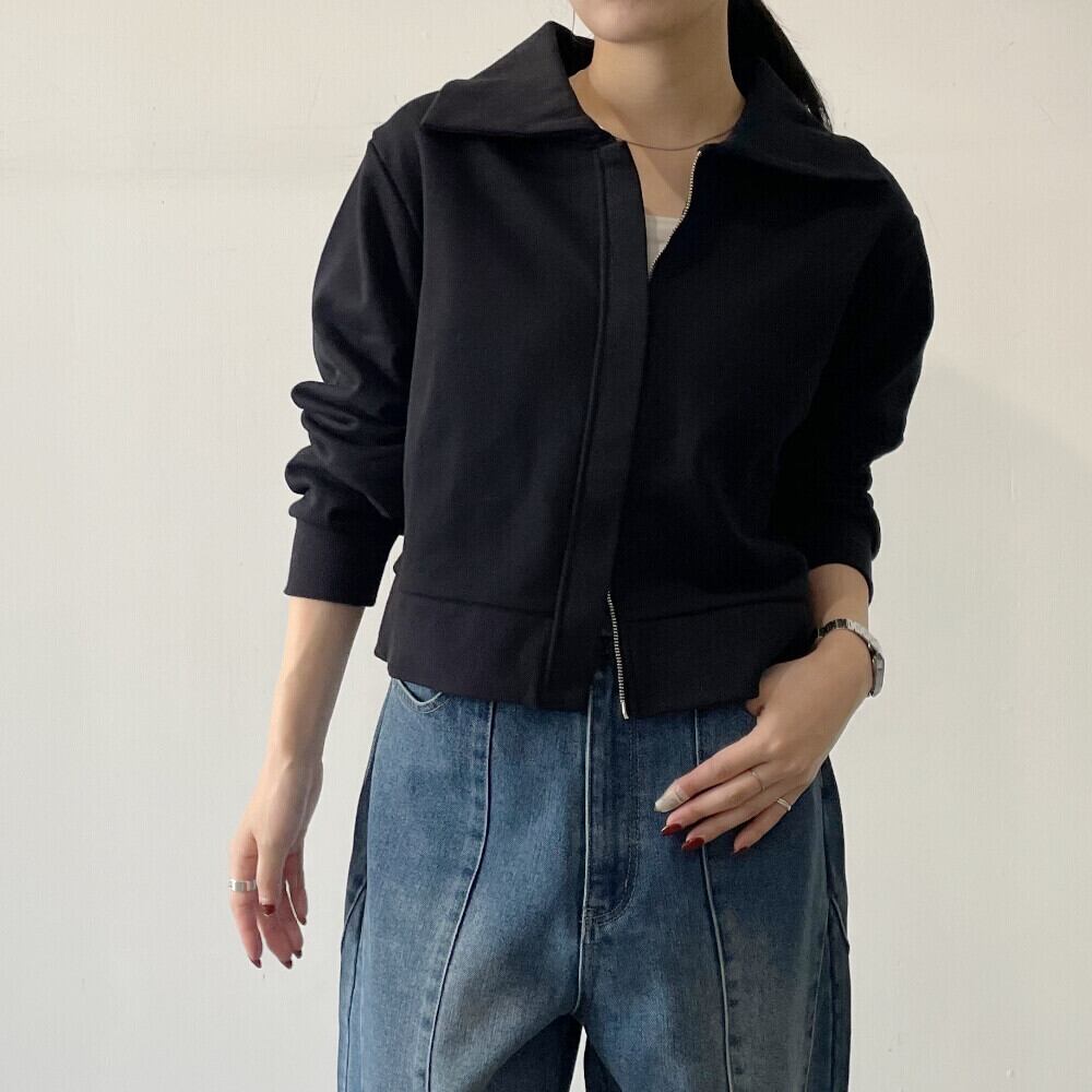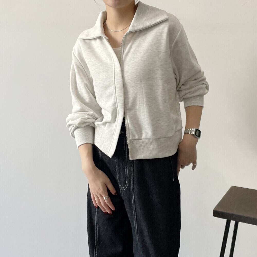 ・スタイル:裏毛襟付きジップカーディガン