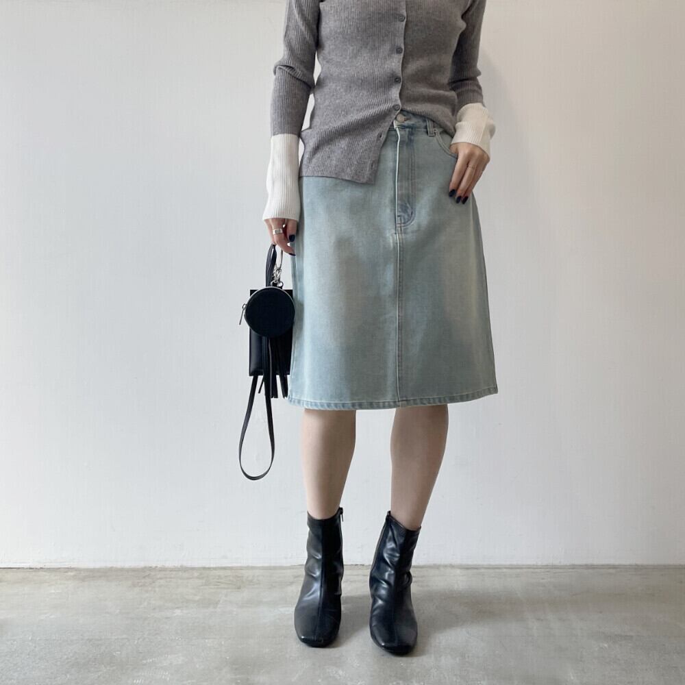 ・12OZデニムミディースカートは、しっかりとしたデニム素材を使用し、耐久性と快適さを兼ね備えたカジュアルなアイテムです!