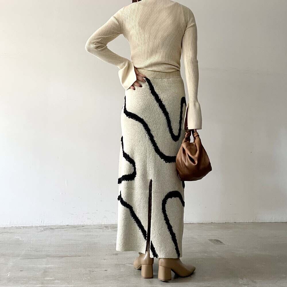 ・ラインジャガードスカートは、流れるようなライン柄が特徴的な、スタイリッシュで魅力的なデザインのスカートです!