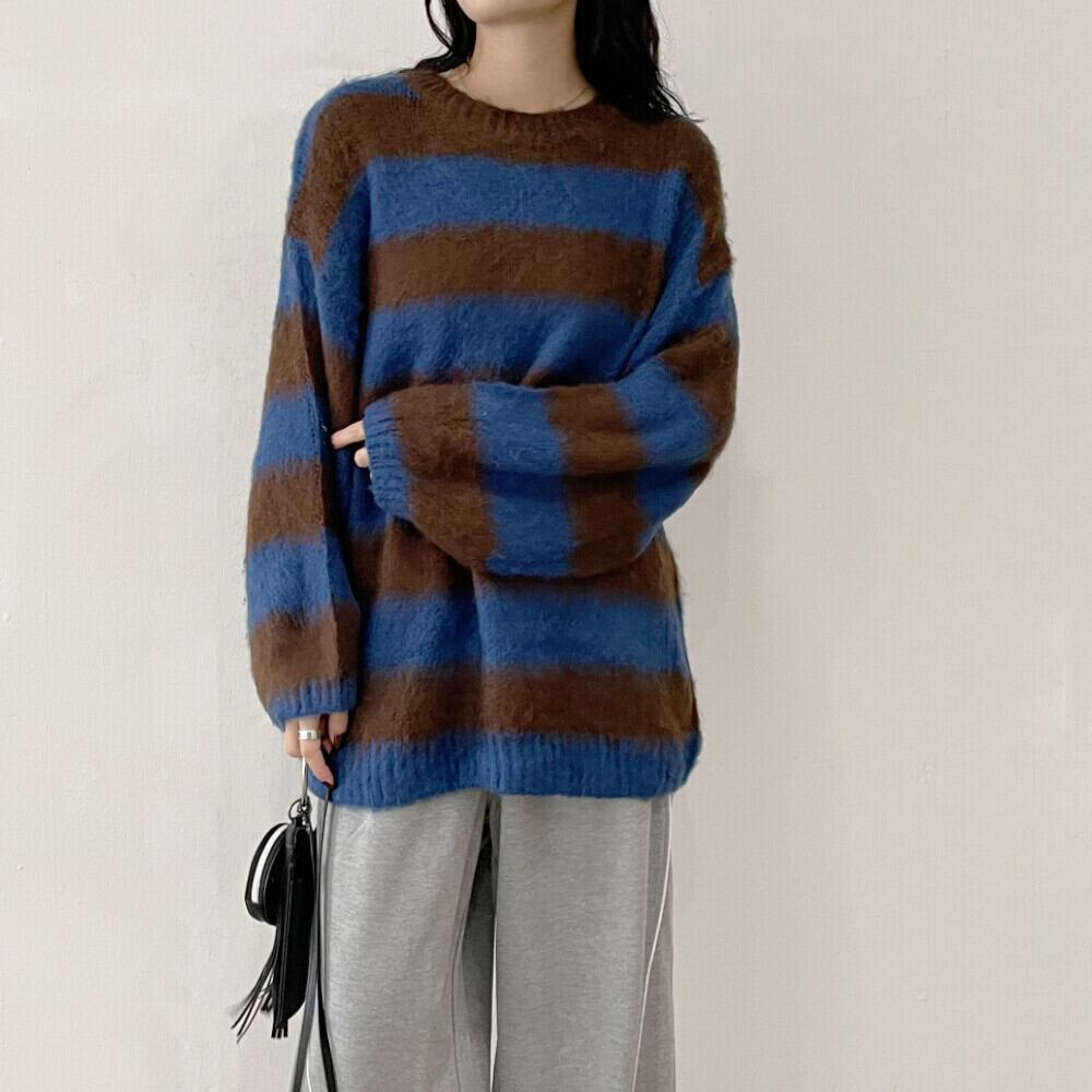 ・スタイル:起毛ボーダーオーバーサイズプルオーバー