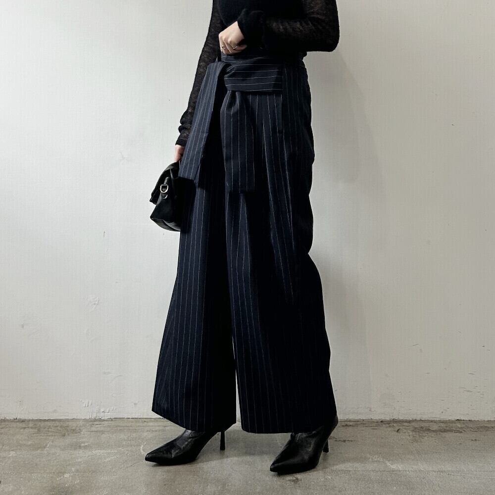 ・ピンストライプ巻きタックパンツは、洗練されたピンストライプ柄が特徴のアイテムです!巻きタックデザインにより、程よいボリューム感とシルエットの美しさを両立させています。