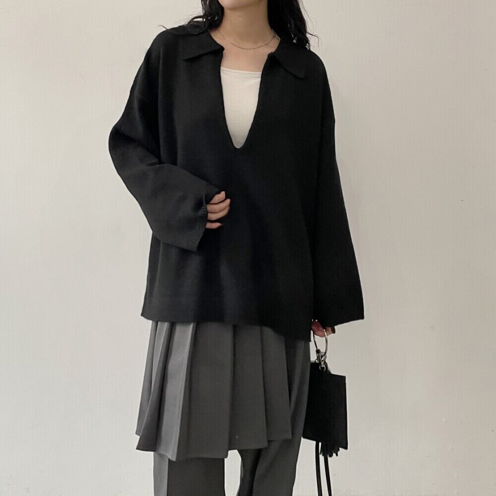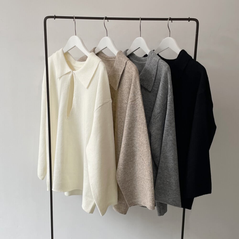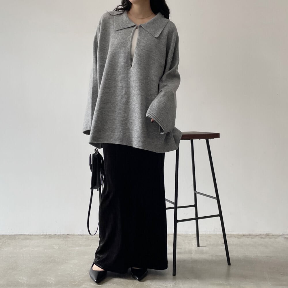 ・スキッパーデザインは、襟元に少しの抜け感を与え、カジュアルながらも上品な印象を演出します!デニムやスカートとのコーディネートがしやすく、様々なシーンで活躍すること間違いなしです。