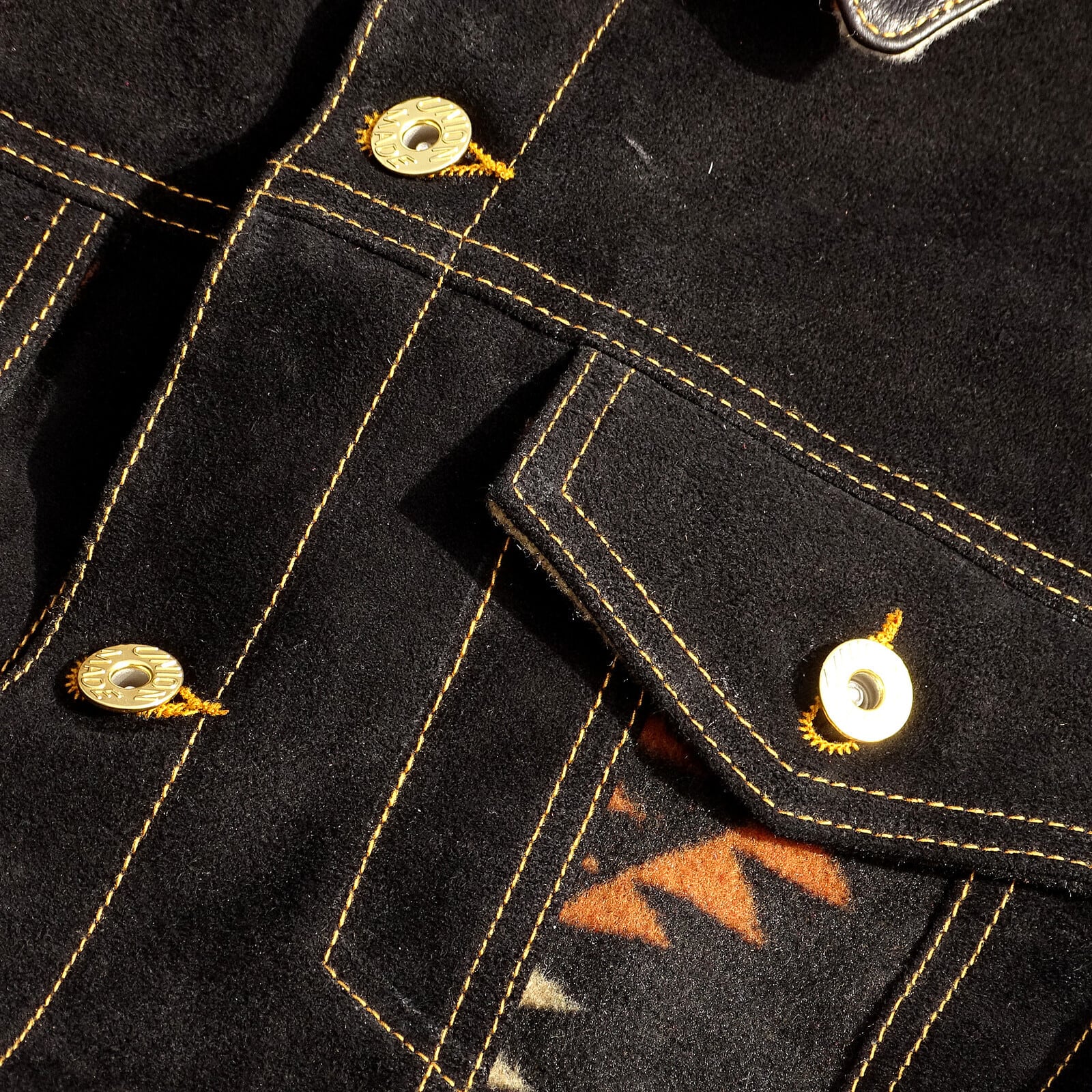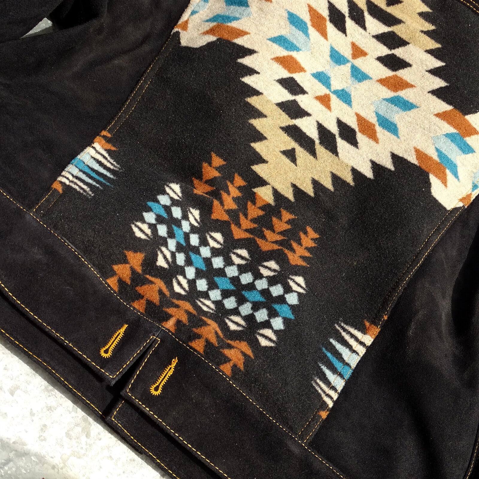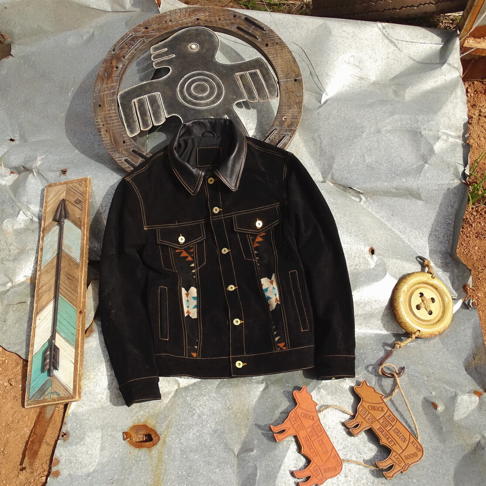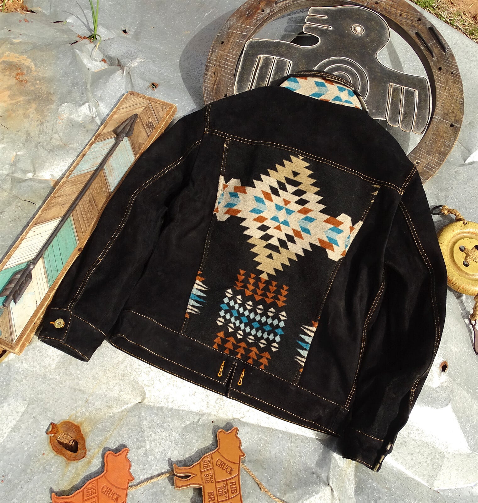 ・スタイル:ナバホ柄 レザージャケット ライダースジャケット 本革 カウハイド デニムジャケット