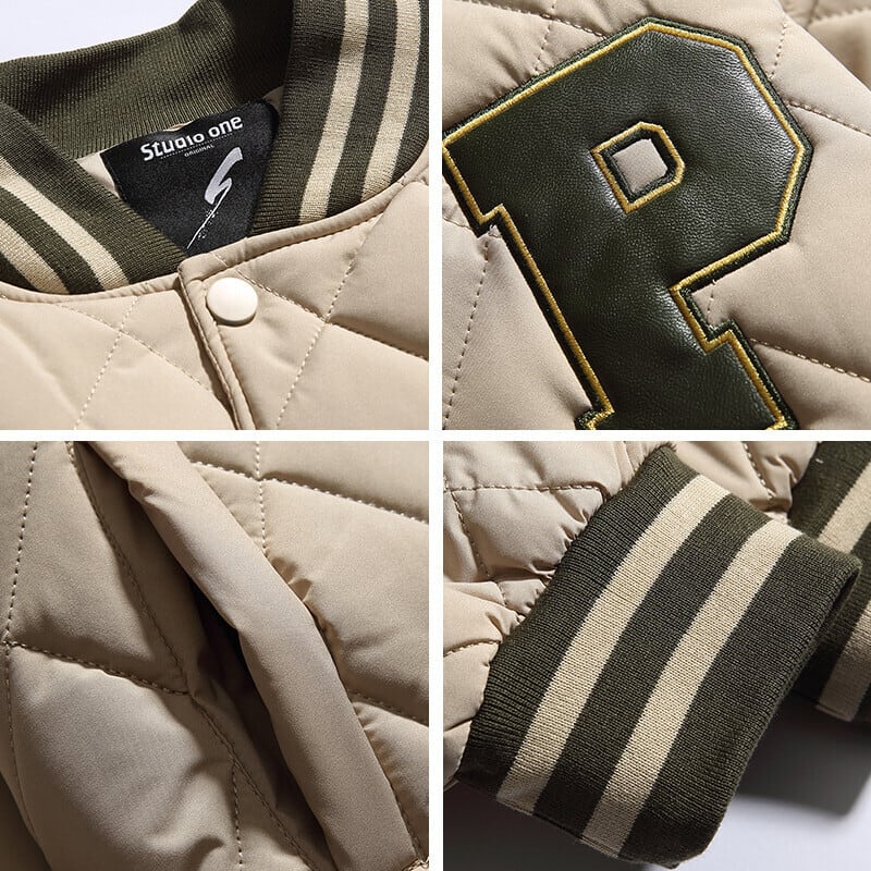 ・スタジャン 中綿ジャケットは、スポーティさとカジュアルスタイルを兼ね備えた一着です!中綿入りであたたかさがあり、寒い季節にもぴったりの防寒性を誇ります。