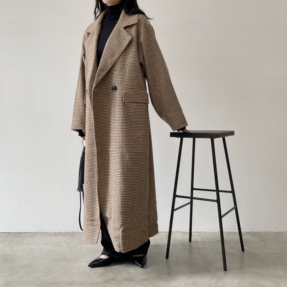 ・スタイル:チェックロングコート レディース 冬 コート チェック柄 ロング丈