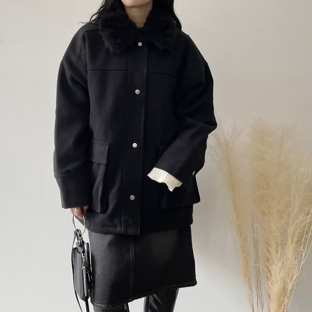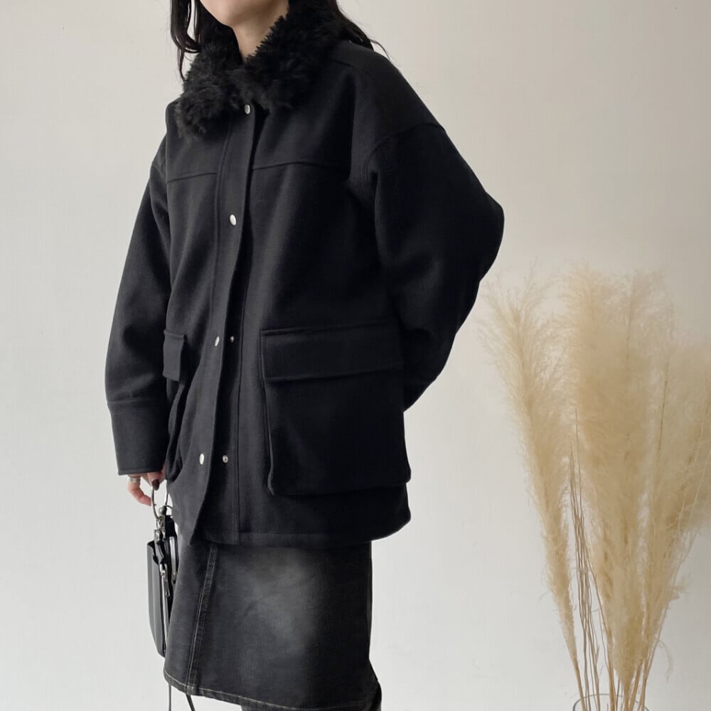 ・スタイル:フェイクウール衿ファー薄中綿入りミドルカバーオール レディース カバーオール