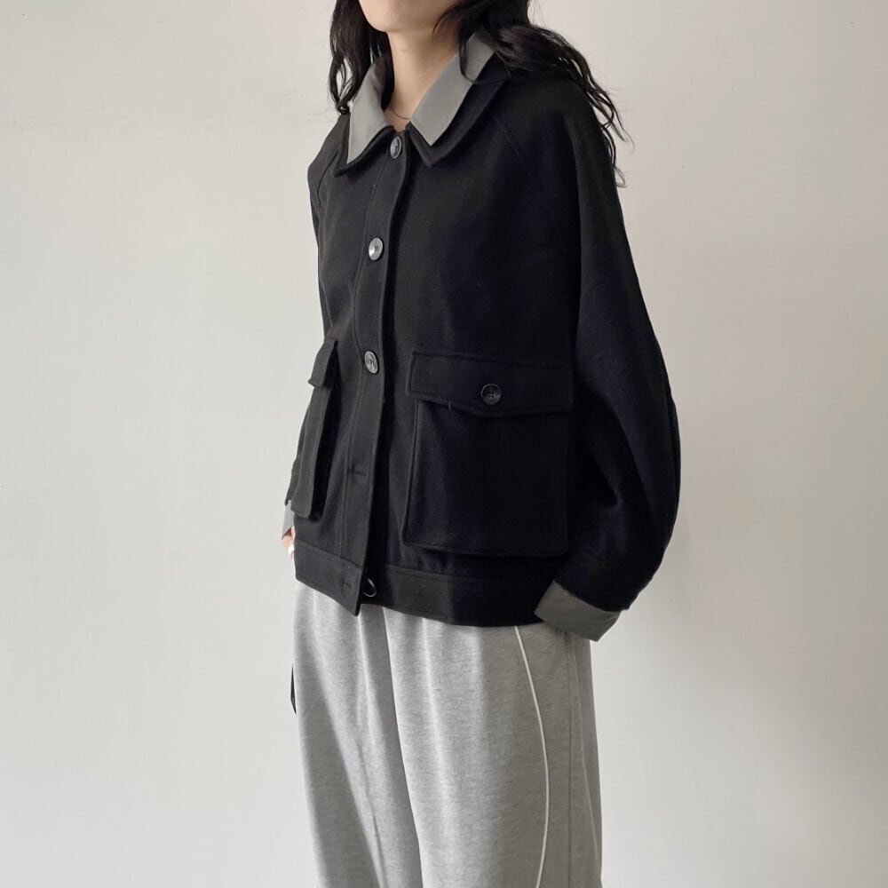 ・スタイル:衿レイヤードフェイクウールJK レディース ジャケット
