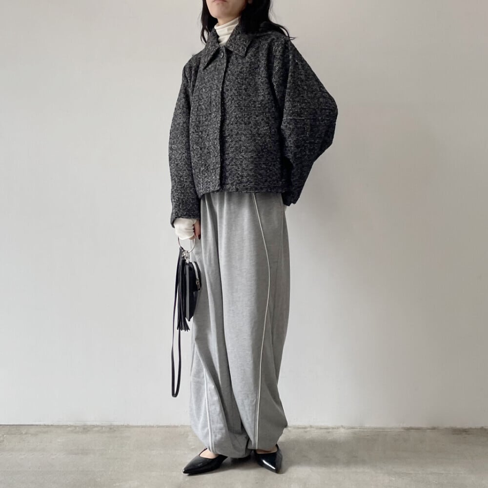 ・起毛ツィードコクーンスリーブJKは、柔らかい起毛ツィード素材を使用した洗練された一着です!コクーンスリーブが特徴で、シルエットにボリューム感を与えつつ、優雅な印象を演出します。季節を問わず心地よく着用でき、あらゆるシーンで重宝するアイテムです。