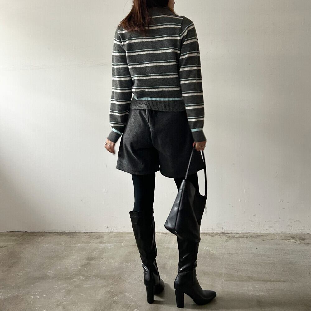 ・スタイル:アルパカタッチマルチボーダーポロニット