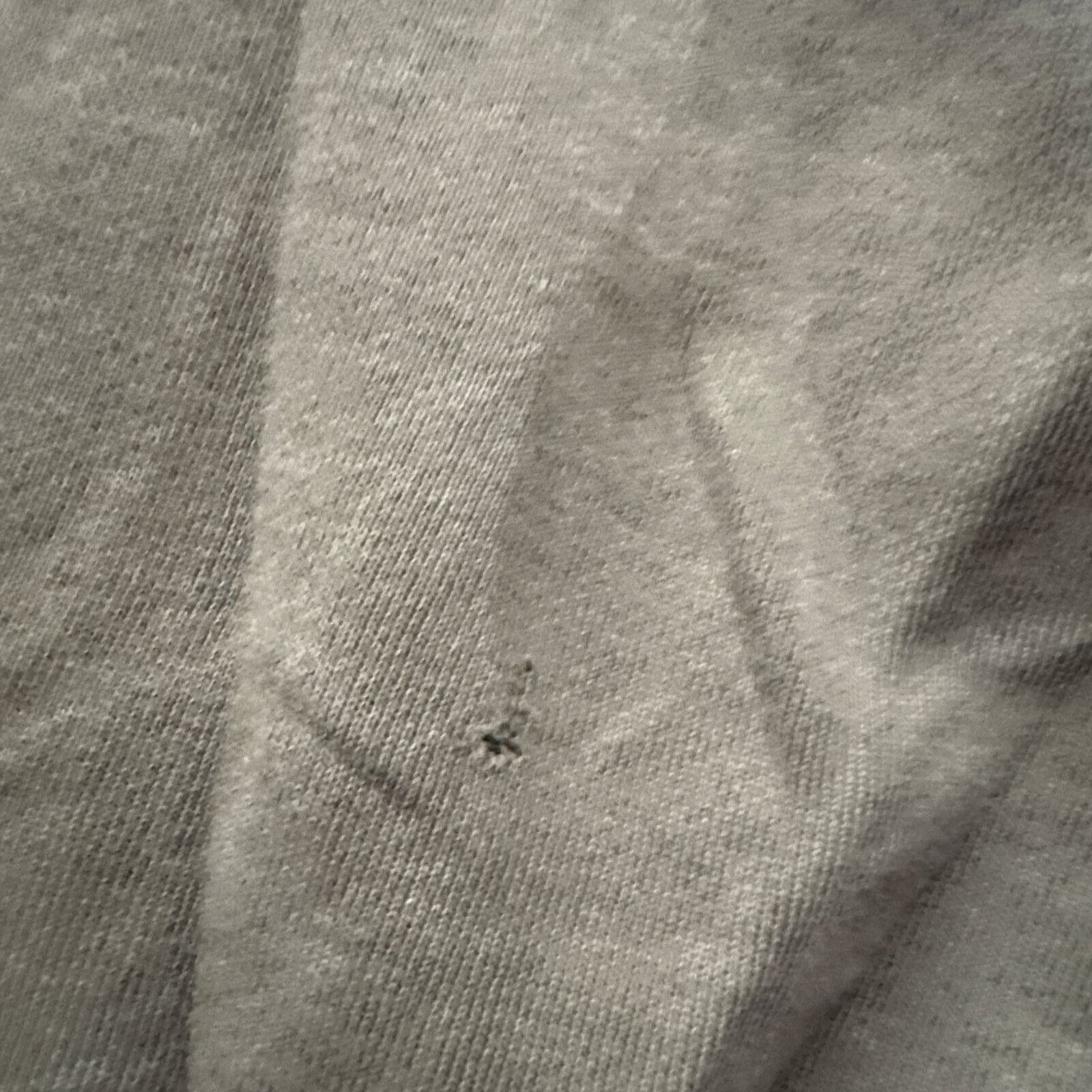 袖口、裾、フード周辺の縫い目やリブ部分にほつれや小さな破れなどのダメージ、また、生地の一部に小さな穴がございます。