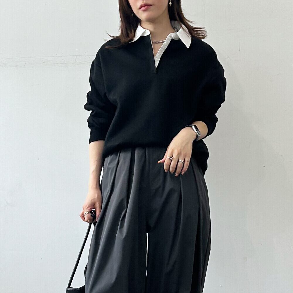 •首元のポロ襟は、きちんと感を演出しつつ、ラフなスタイルにもマッチします。前面には控えめなロゴ刺繍が施されており、さりげないポイントとなっています。