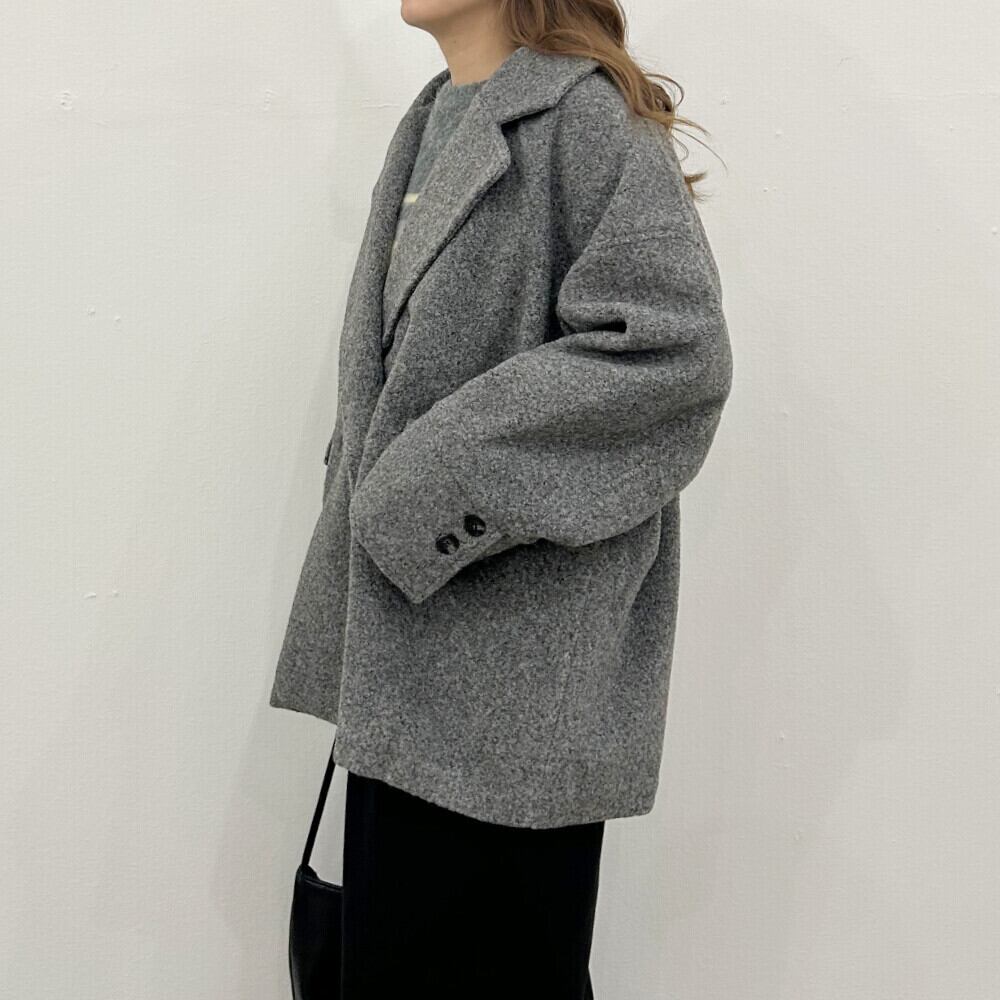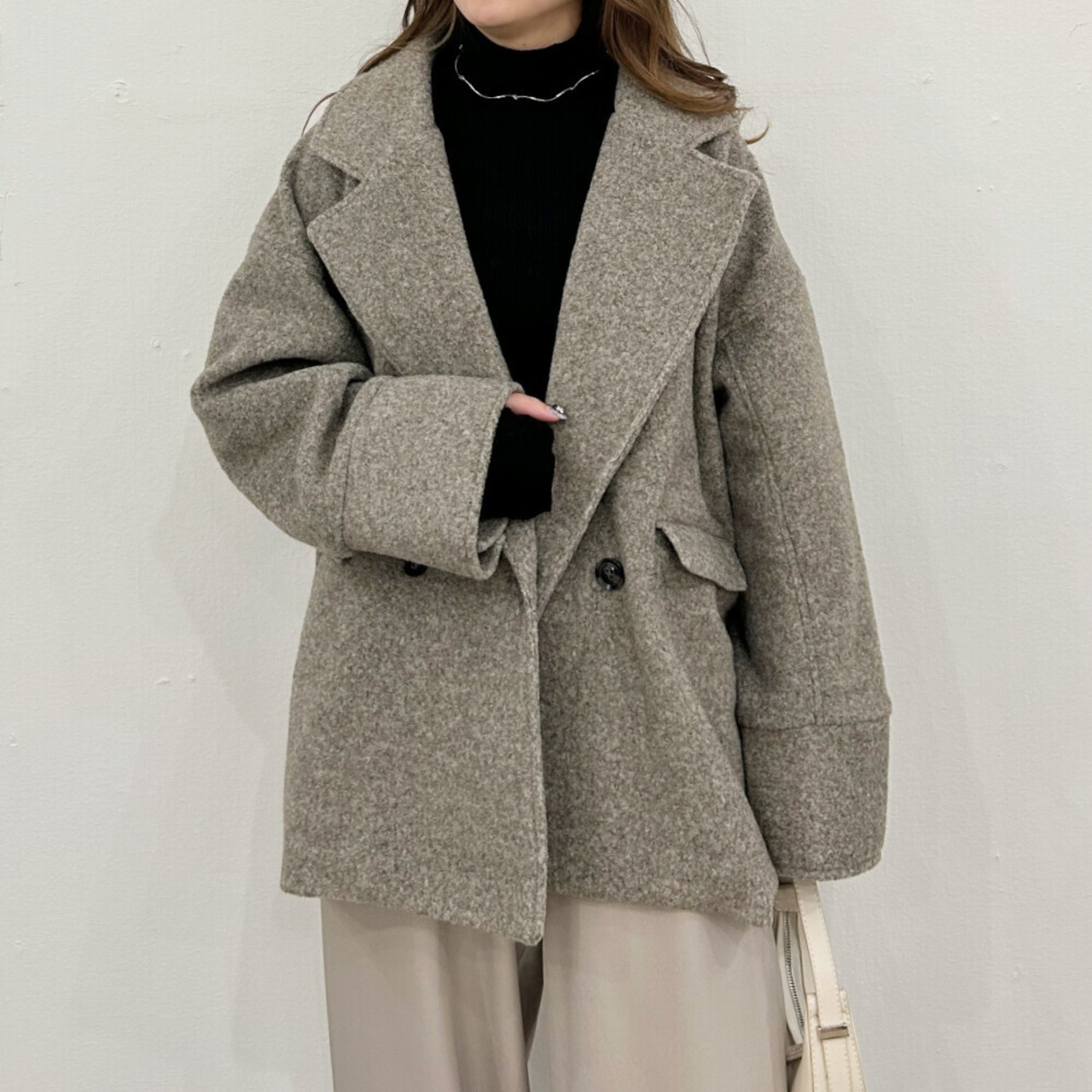 •スライバーニットダブルコートは、柔らかく温かみのある素材感が魅力です。寒い季節にぴったりのアイテムで、シンプルながらも洗練されたデザインが特徴です。