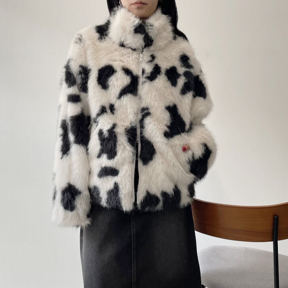 •アイテム:COW柄ファーレギュラー丈ブルゾン