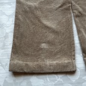 右足の裾付近に、コーデュロイの生地表面が若干白っぽく変色した箇所が一部見られます。着用には問題ございません。