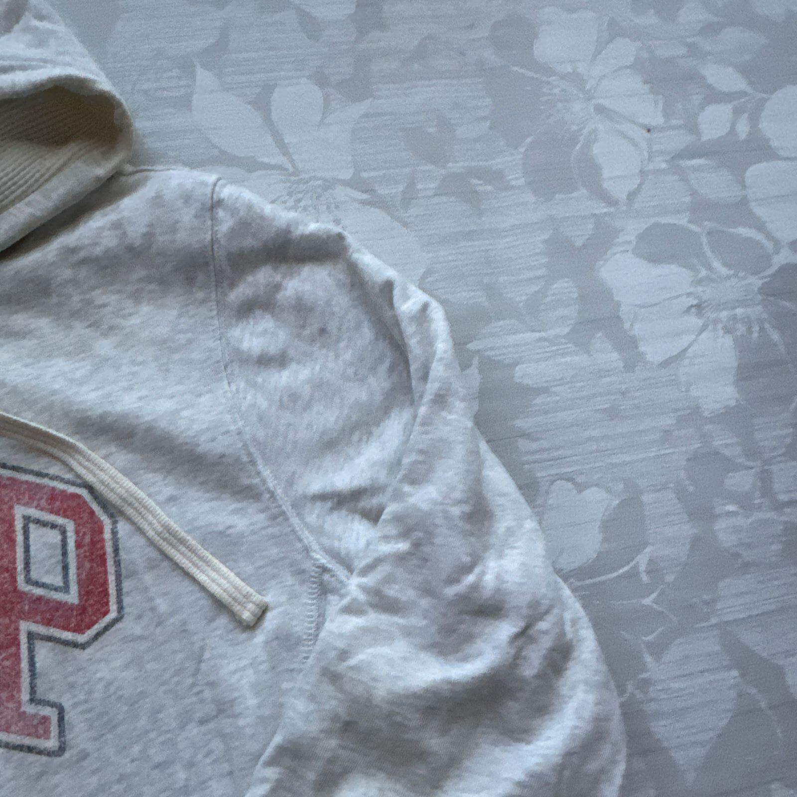 (全体的に着用感があり、フード裏・首元・袖口に薄い黄ばみまたは軽度な汚れが見られます。)
