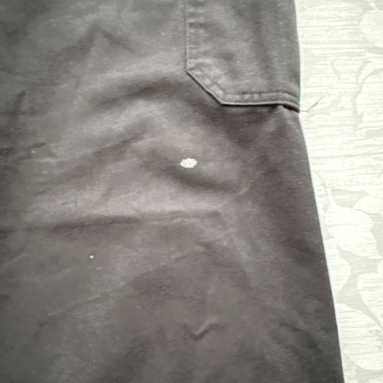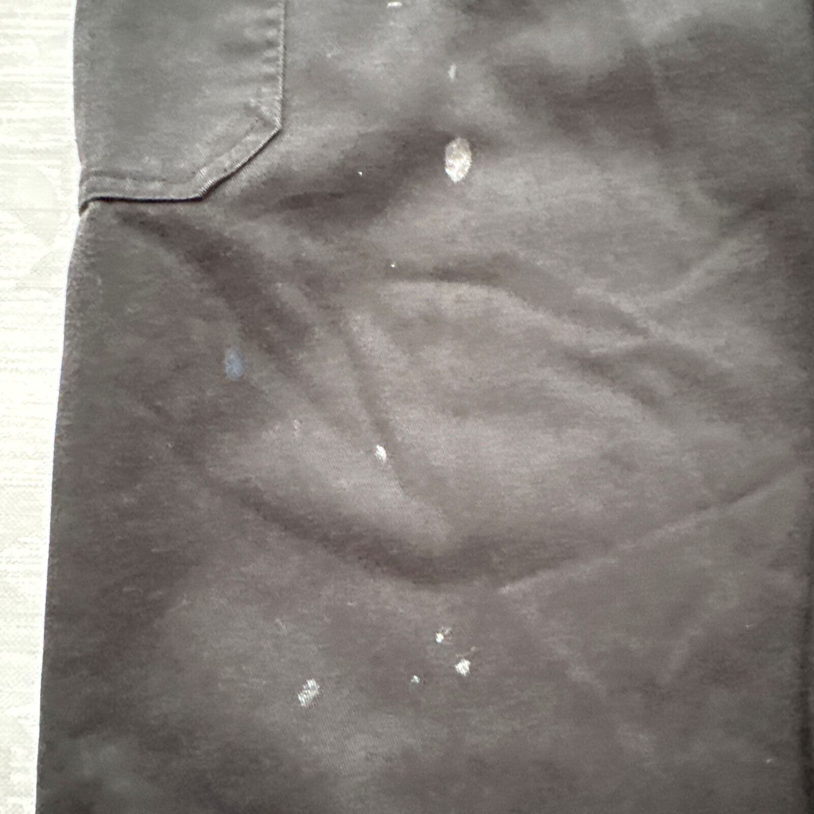 •状態:汚れや使用感あり。全体的に色褪せと、白いペンキのような汚れや茶色いシミが複数箇所にあります。作業着として、または古着の味としてご理解いただける方におすすめです。(詳細は画像をご確認ください)