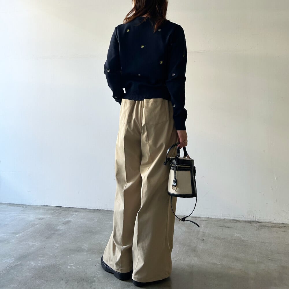 すっきりとしたシルエットが魅力のツイルチノワイドパンツです。柔らかく、しっかりとした生地感が特徴で、履き心地も抜群です。カジュアルスタイルからビジネスシーンまで、幅広く活躍するアイテムです。ワイドなシルエットがトレンド感を演出し、足元をスッキリ見せてくれます。