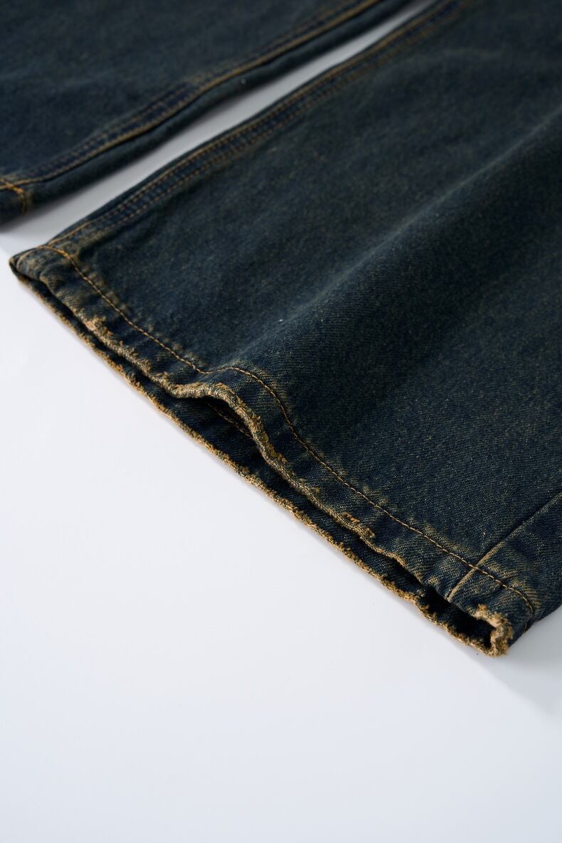 トレンド感あふれるデザインが特徴のメンズ ヴィンテージ風 ダメージ加工 ラインストーンチェーン デニムパンツです。ユーズド感のあるダメージ加工が施され、さらにラインストーンチェーンが華やかさをプラス。ストリートシルエットで、カジュアルスタイルから個性的なコーディネートまで幅広く楽しめるアイテムとなっています。着心地もよく、デイリーユースに最適です。