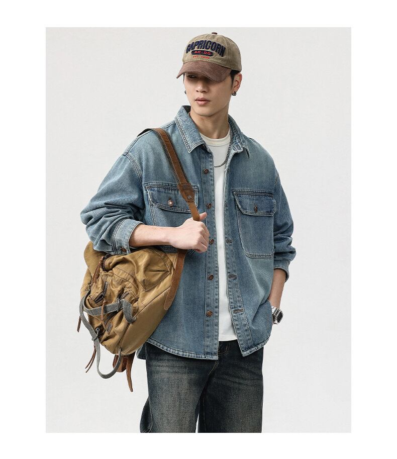 商品名:メンズファッション 無地 デニム 長袖 シャツ 男女兼用 カジュアル トップス 春夏 2026新作