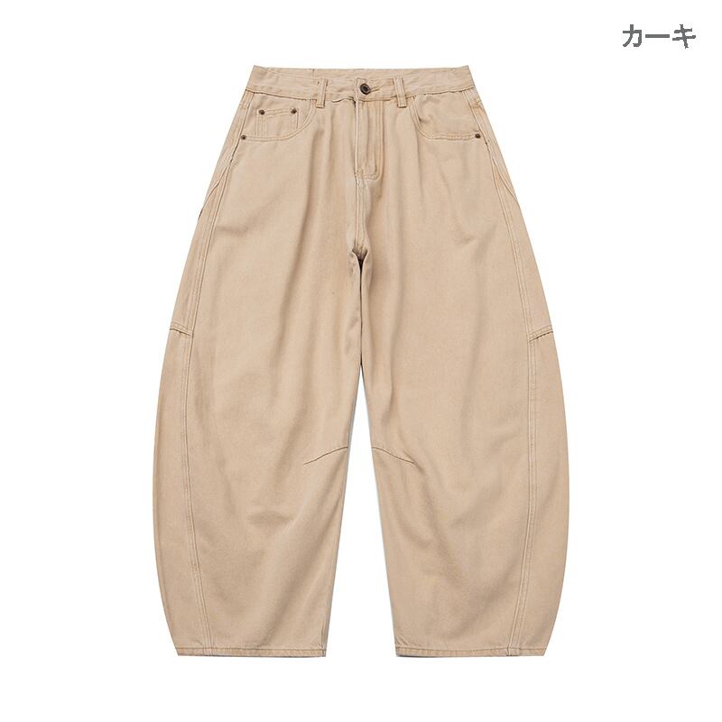 【極太シルエット】REXNAT ワイド バルーン デニム パンツ カーキ