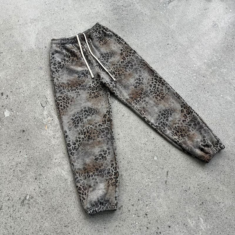 新登場!春秋のスタイルに最適な男女兼用ジョガーパンツ!メンズ ヒョウ柄 裏パイル ジョガーパンツ 男女兼用 春秋 2026新作★全2色